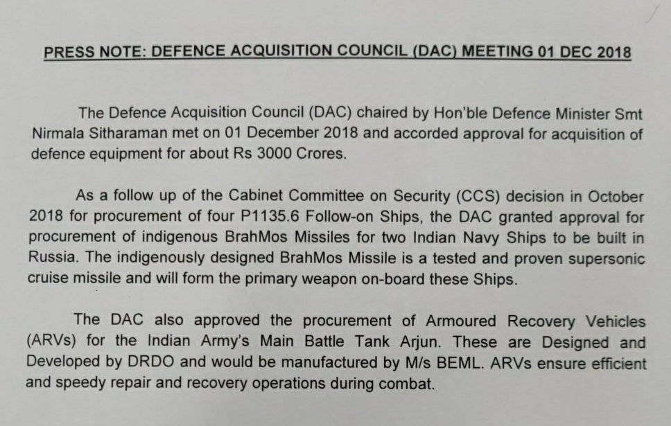 This is important news. It specifically mentions Armoured Recovery Vehicles for Arjun ordered. This means IA is building up infrastructure for Arjun for induction in larger numbers, just like Airfields and Shelters were modernised for Su-30 induction.