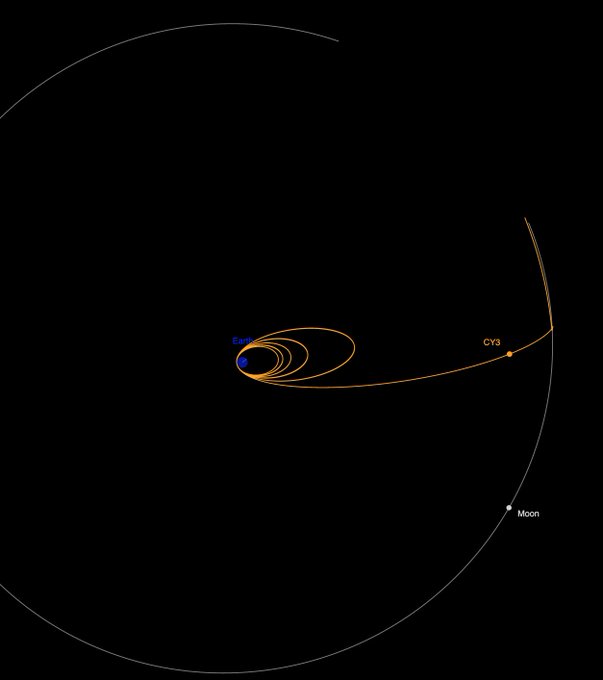 - The final orbit of CY3, wrt to earth: (See <this picture posted by me before for example , the final orbit of CY3 is a circular orbit (Just like our Moon