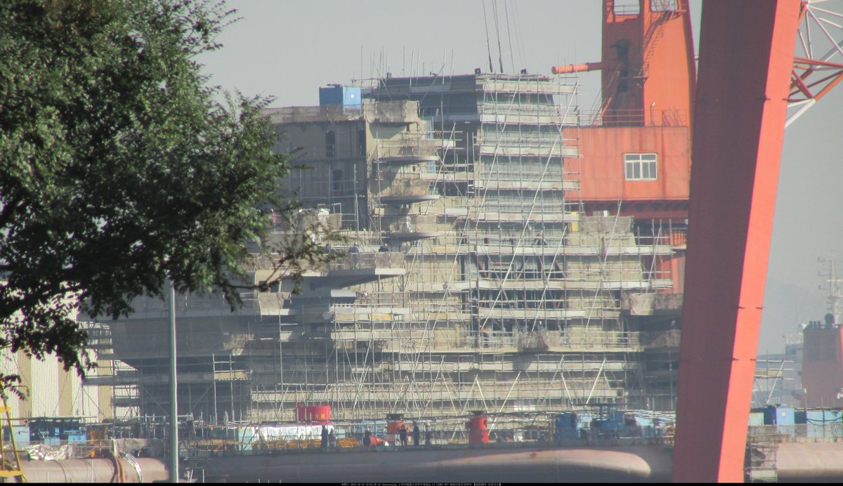Forward part of the large size, Soviet-era superstructure gets integrated