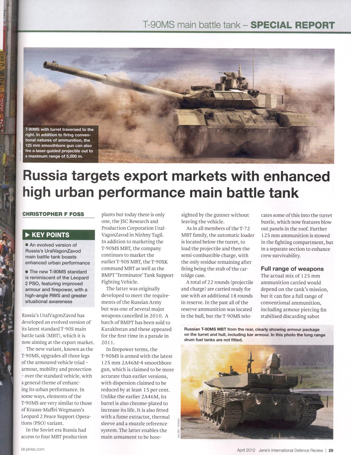 Russia targets export markets with enhanced high urban performance main battle tank