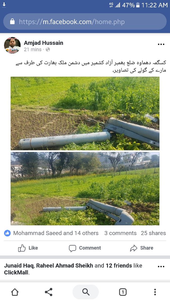 Claims to be a downed 'Indian' missile in Bimber near Mirpur. Apologies for my sketchy Urdu.