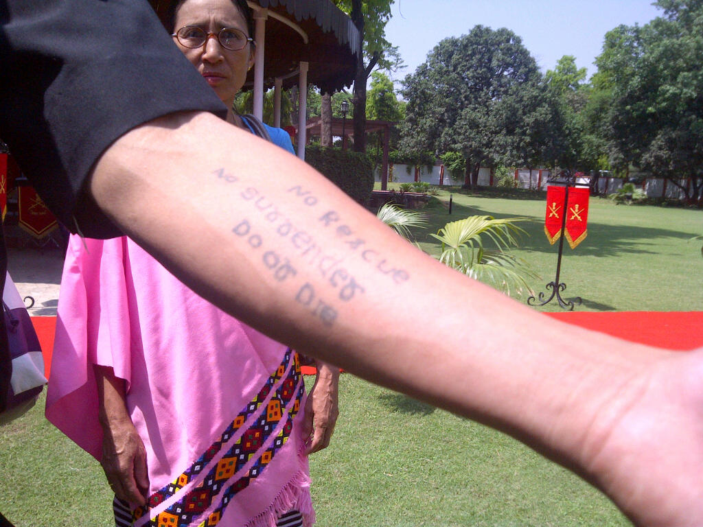 On most people's arm, it would have looked like bravado. On this amazing man's arm, it just reads like a simple fact of life. A motto by which these people live everyday.