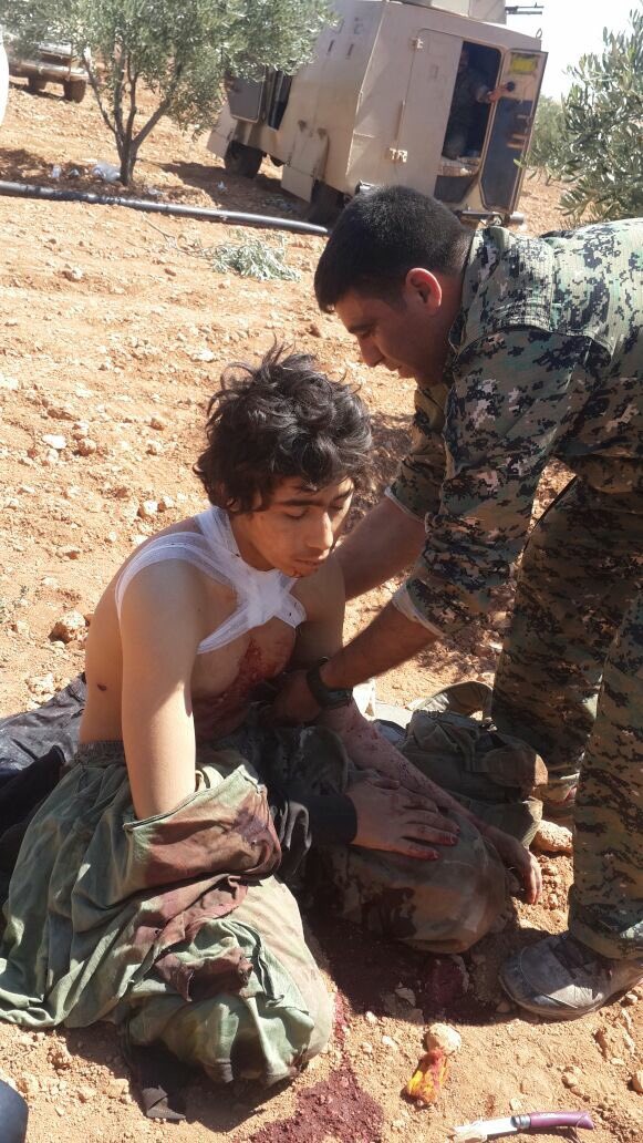 a injured isis zombie captured by ypg - most of them look dazed and drugged ....